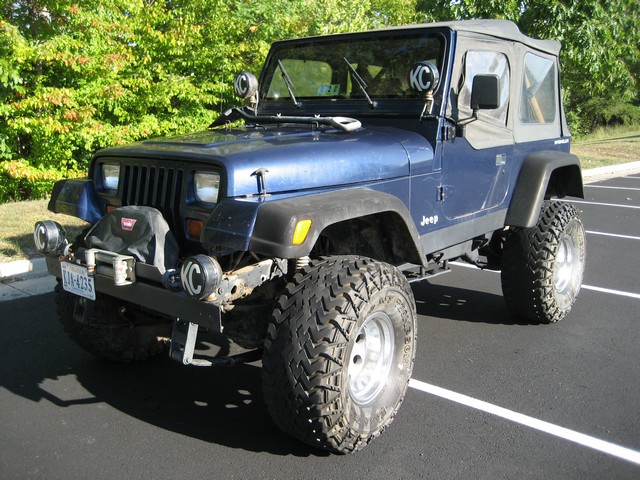 1991 Jeep Wrangler 4.0 Ltr. Inline 6 5 Speed Manual Trans. 4" Suspension Lift 2" Shakle Lift 3" Body Lift 36"x14.5" Mickey Thompson tires 15" Baja Rims 7" Xenon Fender Flares 4 KC Lights 8,000 lb Warn Winch Spray in Bed Liner in Cab Polurathene Bushings All Around 1.5" Transfer Case Lowering Kit Flowmaster Performance Muffler JVC AM/FM CD Head Unit